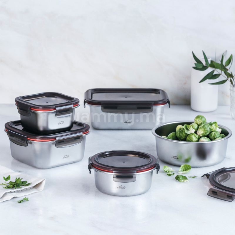 Optez pour un récipient pratique, durable et 100 % hermétique avec le conteneur ECOINOX de Lacor. Conçu en acier inoxydable 18/10, il allie robustesse, hygiène et modernité pour préserver vos aliments en toute sécurité, à la maison comme en déplacement.
