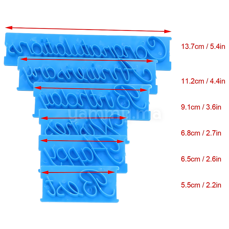 Cet ensemble de 6 emporte-pièces est parfait pour ajouter des messages personnalisés à vos créations pâtissières. Que ce soit pour un anniversaire, une fête, ou une occasion spéciale, ces découpoirs vous permettent de créer des décorations élégantes et mémorables avec facilité.