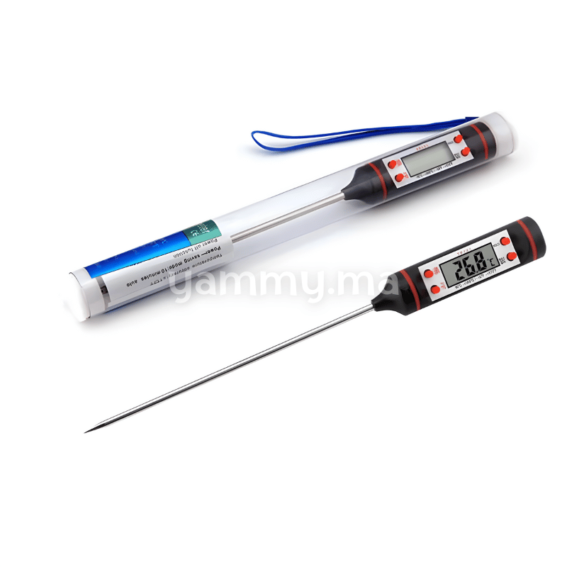 Thermomètre numérique idéal pour mesurer la température de vos préparations culinaires avec précision.